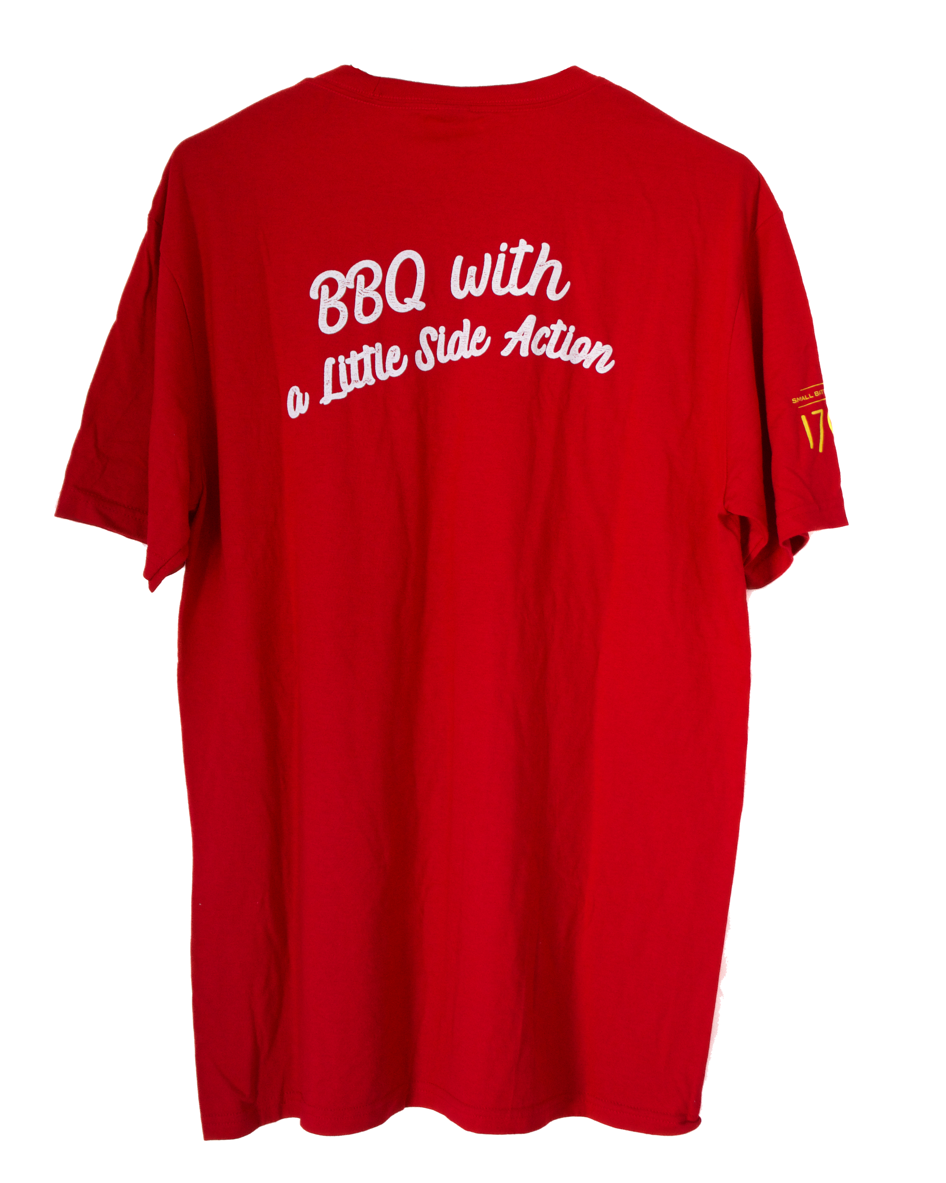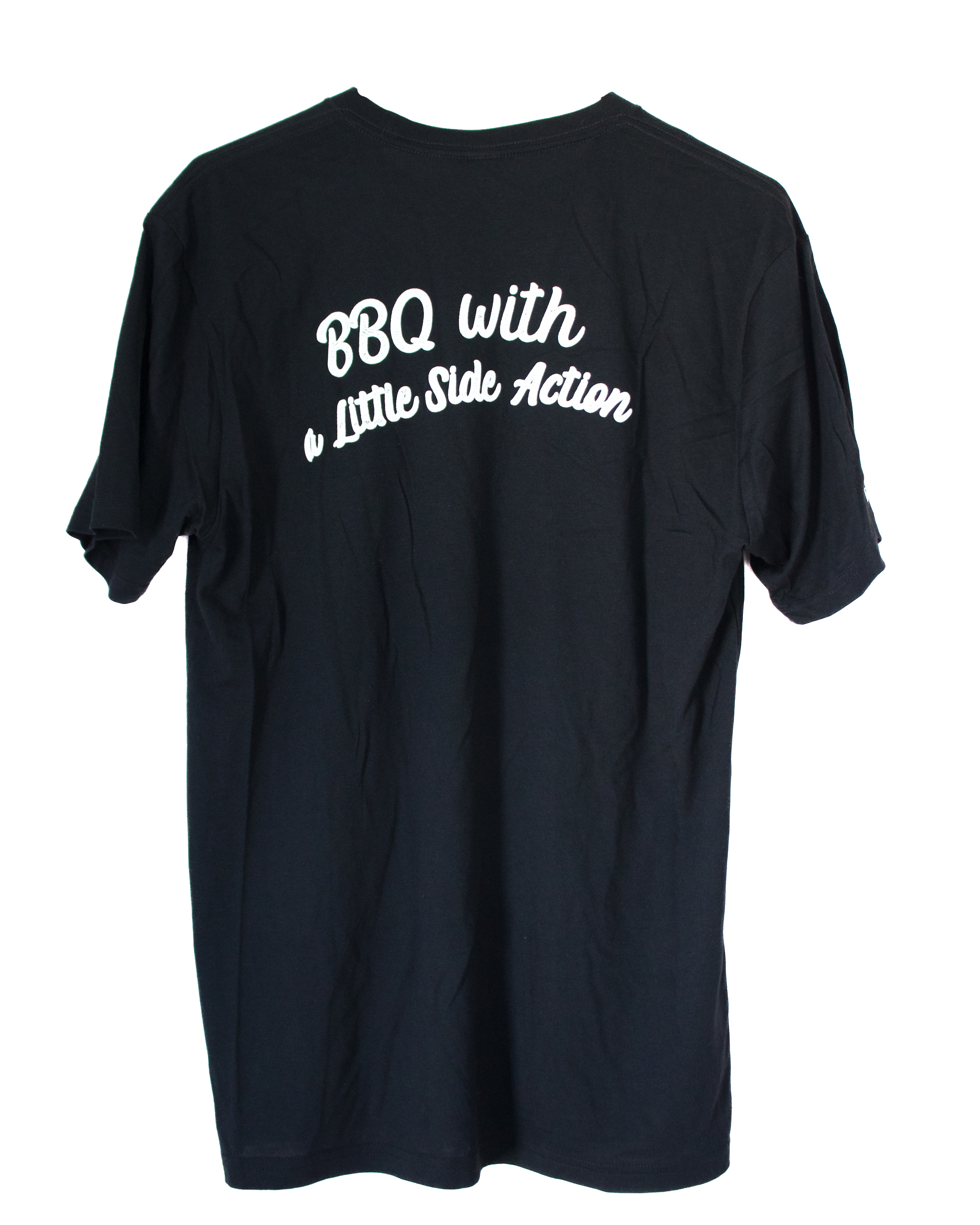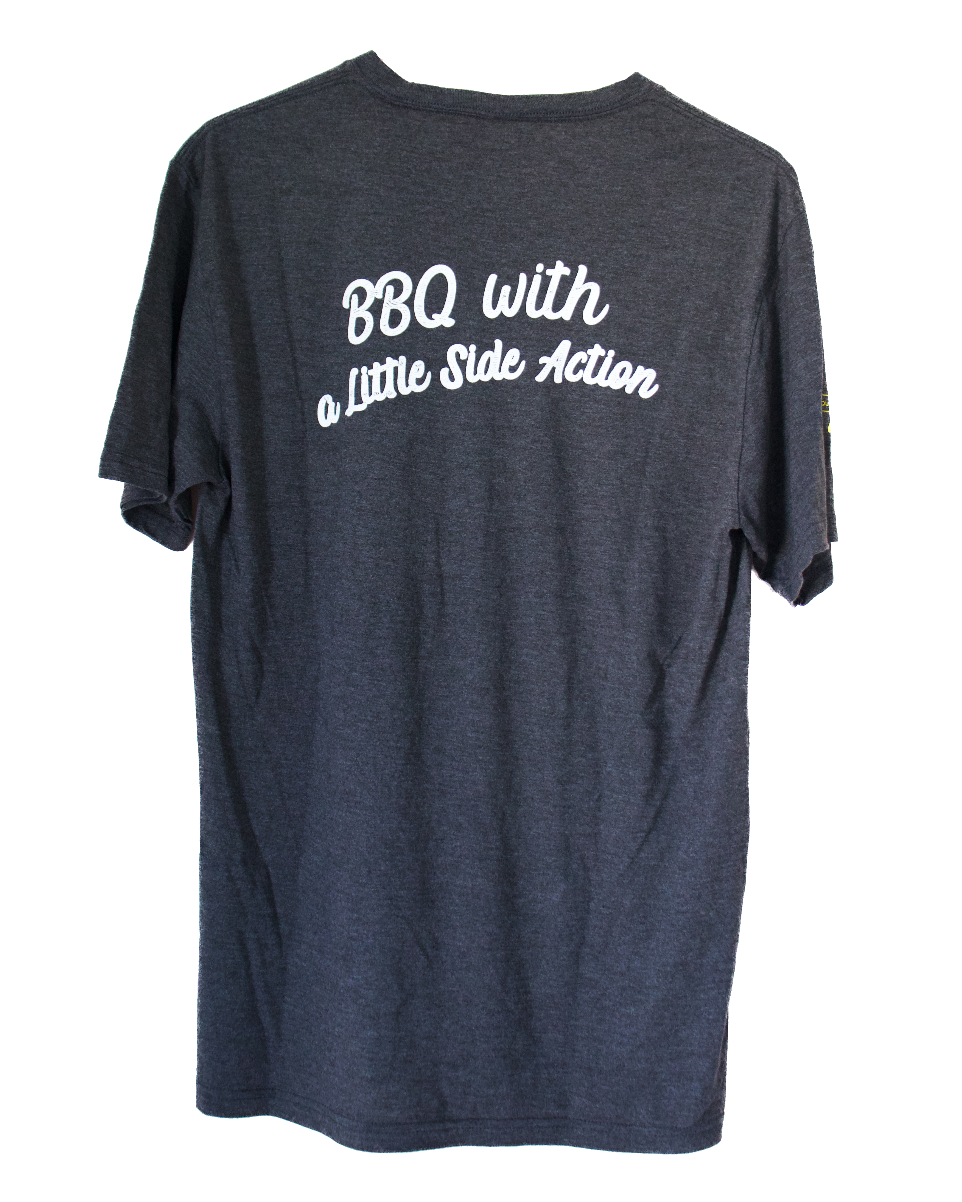 Soft t-shirts with our famous flaming pig logo on the front and “BBQ with a Little Side Action” on the back. Unisex, available in 3 different colors.